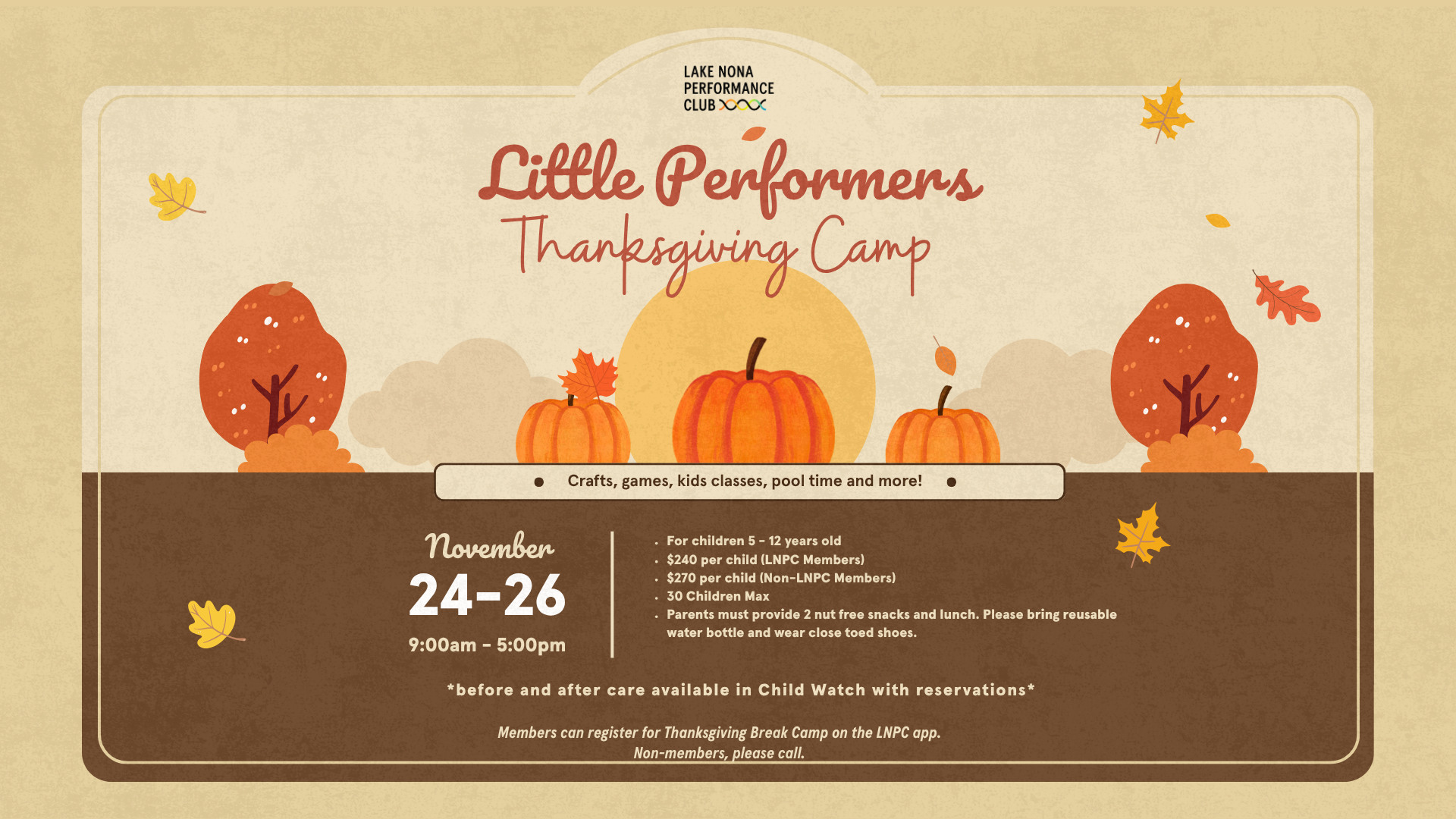 Join us for a fun-filled Thanksgiving week! Kids ages 5–12 will enjoy crafts, games, pool time, and special classes designed to keep them active and creative during the break.