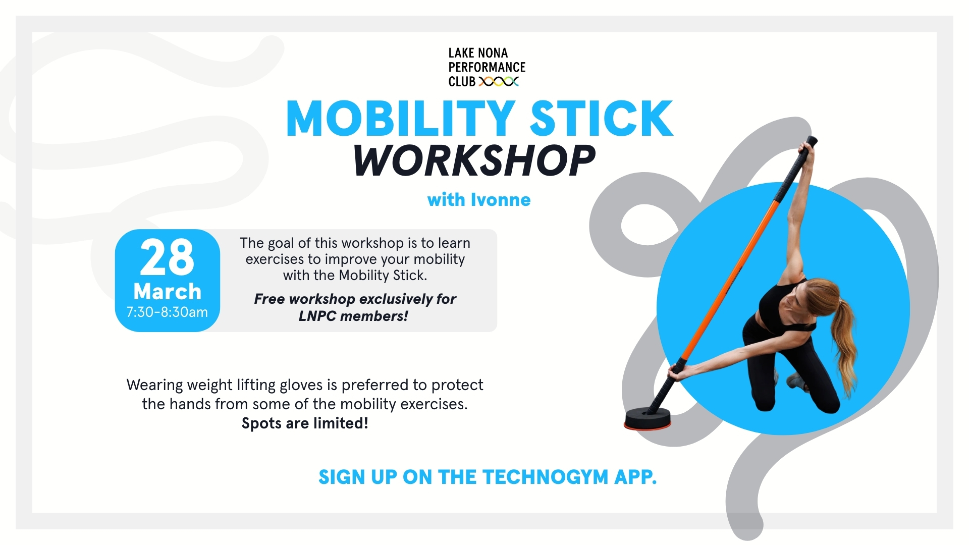 The goal of this workshop is to learn exercises to improve your mobility with the Mobility Stick.